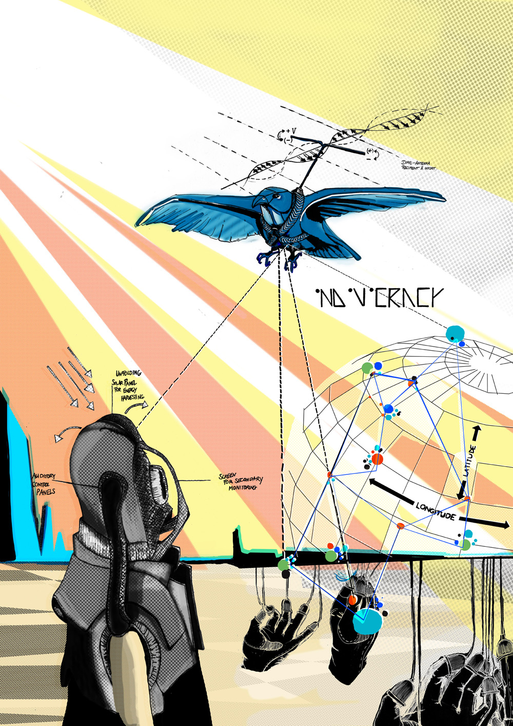 Indivicracy – Tale of a Future Government is a Design Fiction, telling the history of a future nation: diverged from settled existence, its citizens are constantly on the move and non-territorial, linked merely by a governmental network following them around the globe and across borders.