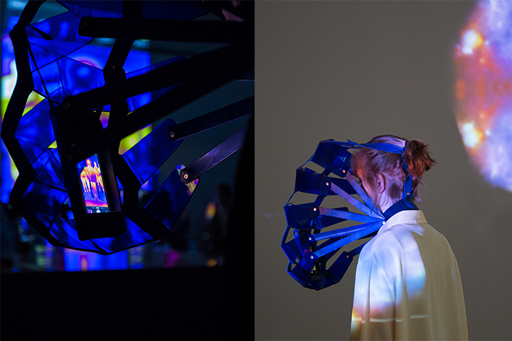 Wear + Seek is an interactive and immersive game based on the principles of Hide&Seek. Upon entering, the audience is asked to wear specially designed garments and to use the various vision systems that were made available: they then went to seek for the garments responding to either of the vision systems they were endowed with. The aim of the play is to send the visitors on a quest to understand the process of ‘being watched’ and ‘being the one watching’ in a world where our bodies are more than ever read and quantified with the help of machine vision.
